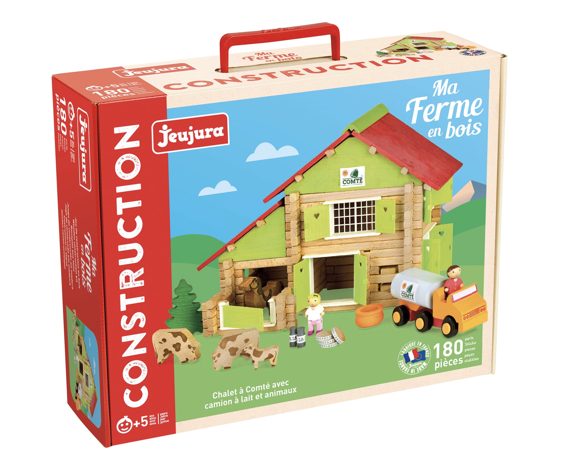 Et klassisk laftet byggesett med trebygning og tilhørende figurer som personer, dyr, natur og ulike småting. Settet inkluderer også en tematisk underlagsmatte. Materiale: Treverk. Antall deler: 180 Anbefalt alder: 5+