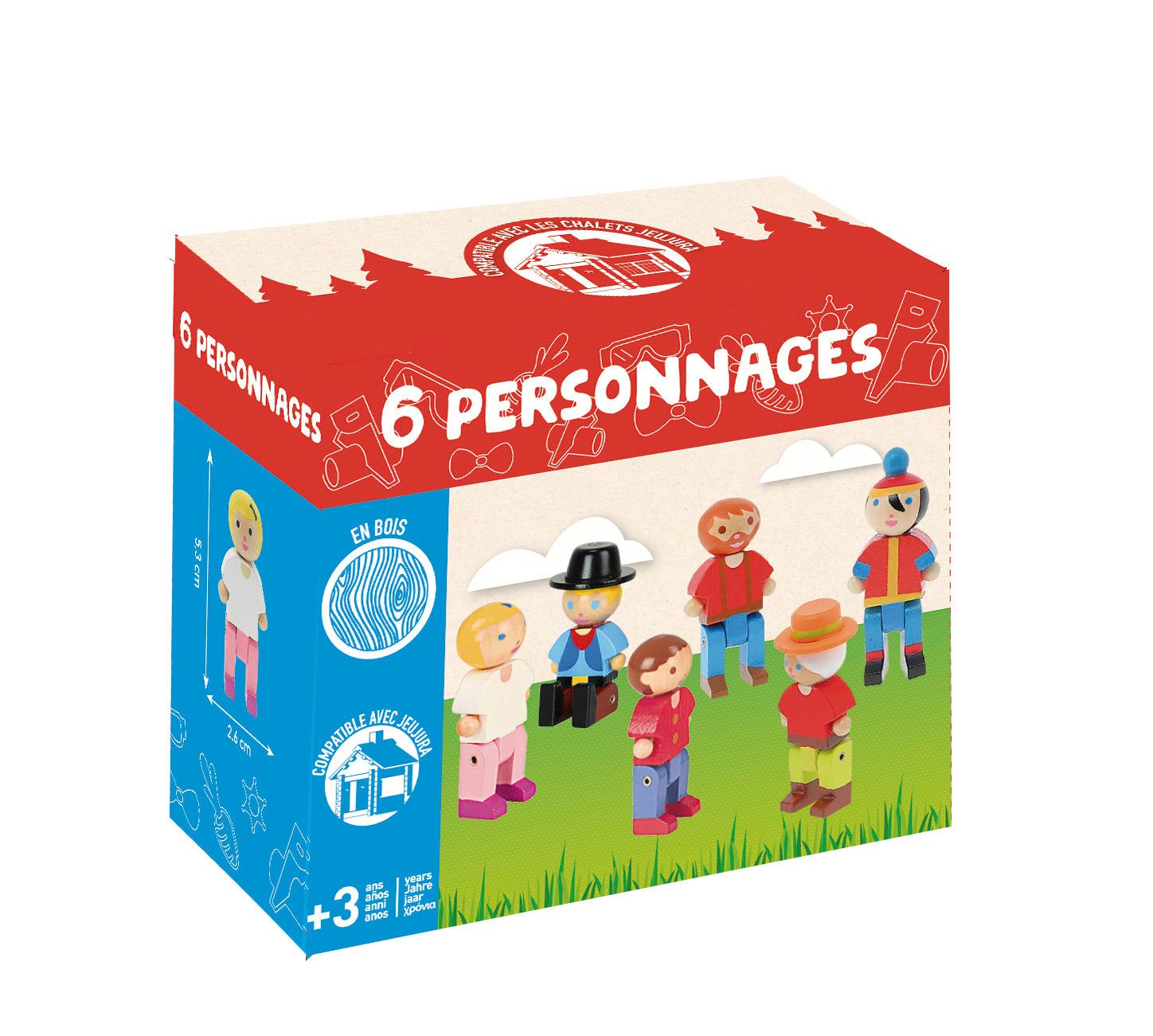 Karakterer som harmonerer med Jeujura-byggesettene, og som også kan lekes med uavhengig av noe byggesett. Materiale: Treverk. Antall deler: 6 Anbefalt alder: 3+