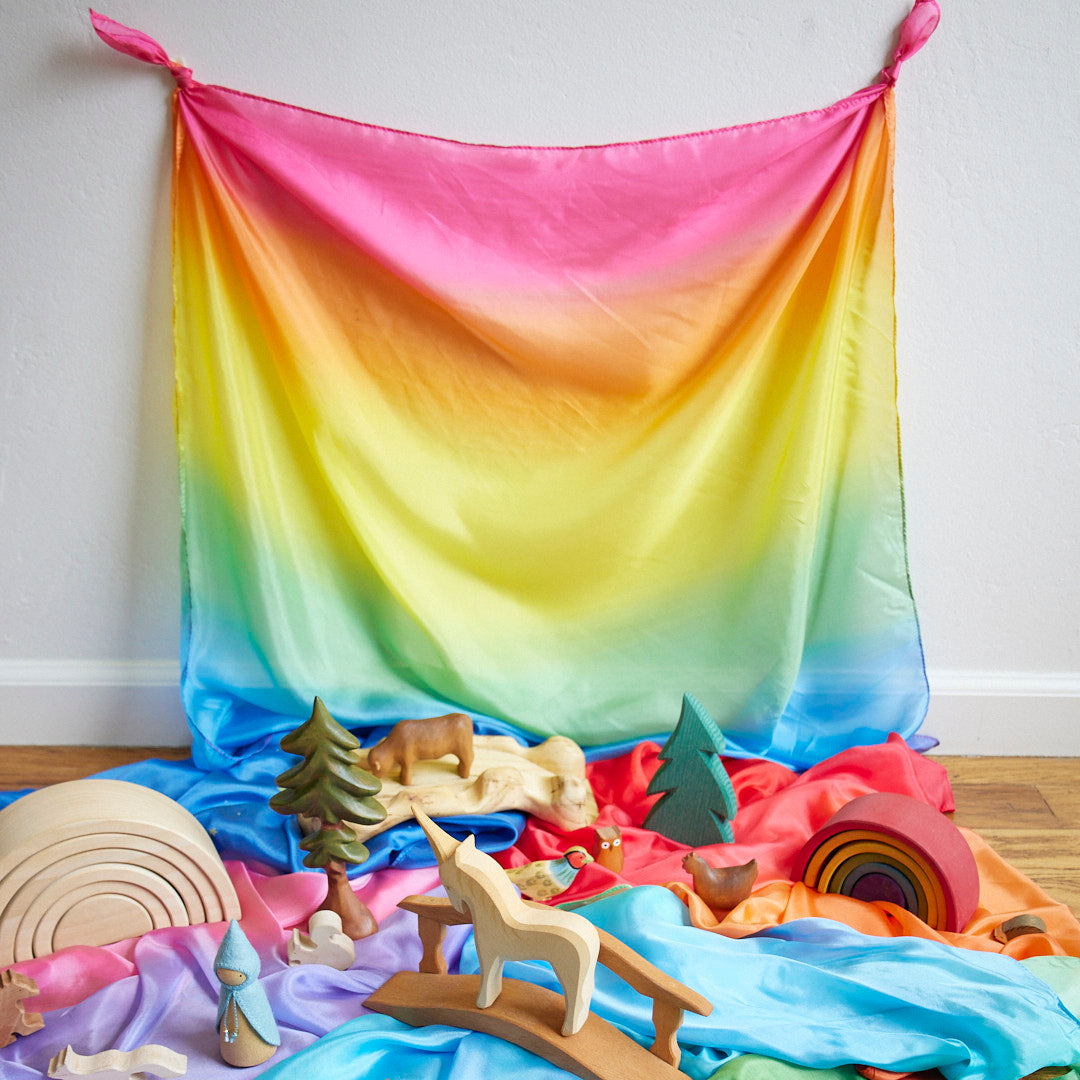 En lekesilke med en fortryllende farge, som passer ypperlig til blant annet et bakgrunnsteppe i en miniatyrverden-rollelek, eller til fysisk rollelek og utkledning. Materiale: Silke Antall: 1 Anbefalt alder: 0+