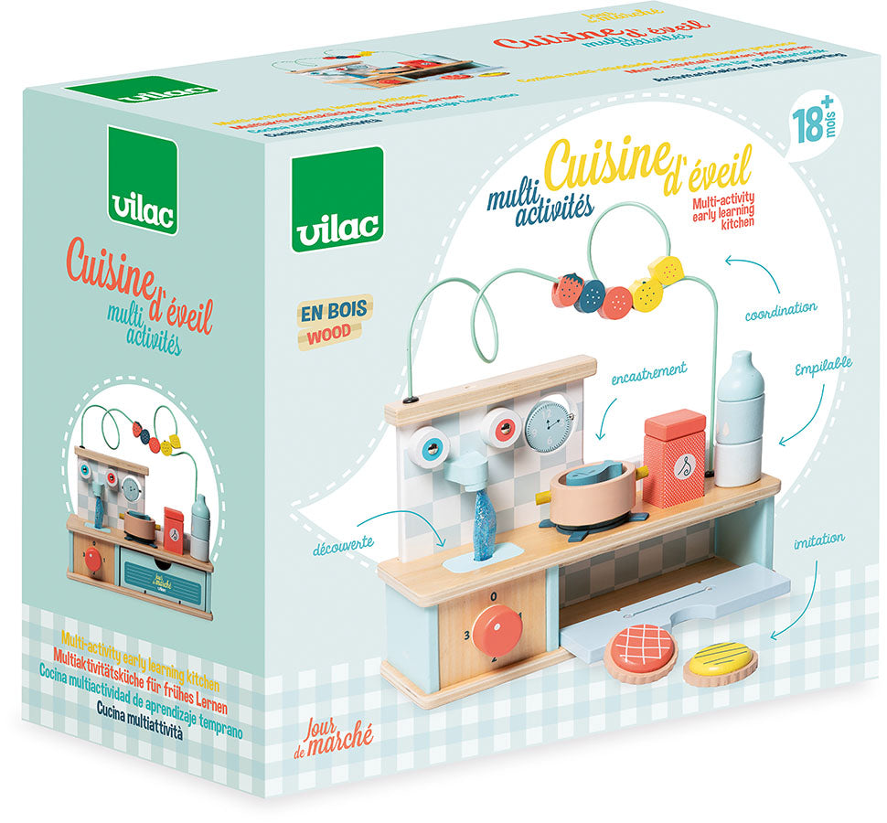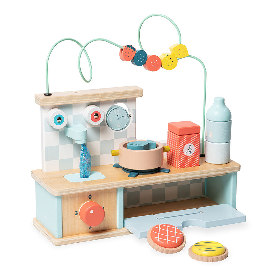 Et lite aktivitetskjøkken til de minste, med mye spennende å utforske. Materiale: Treverk. Anbefalt alder: 18mnd.+