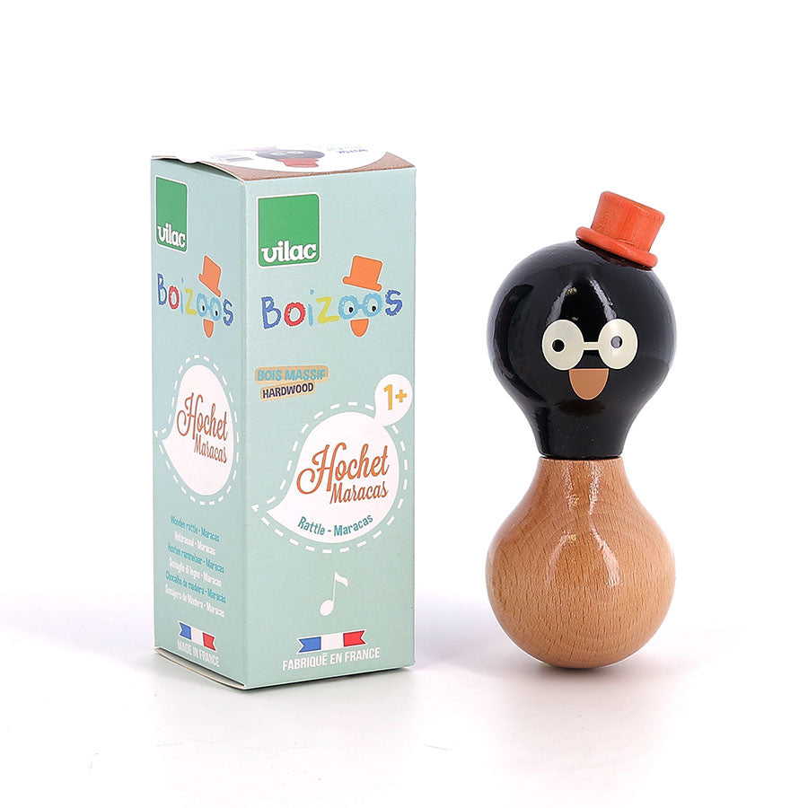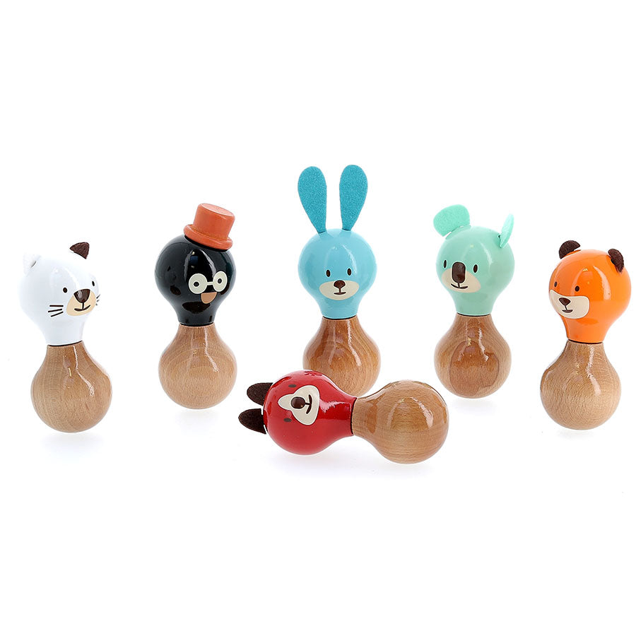 En nydelig dreiet rangle med ulike dyr som motiv. Materiale: Treverk. Anbefalt alder: 1+